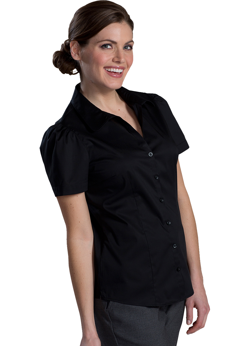 Ladies' Tailored Open Neck Stretch Blouse-shor (5046-1)